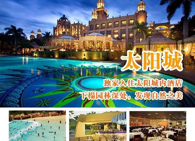 酒店早餐。前往機(jī)場,搭乘航班飛往約堡。驅(qū)車前往南半球最大的娛樂中心-太陽城。不曾身臨其境,便無法真正理解太陽城給人所帶來的震撼。將古老傳說的神秘滄桑、非洲大陸的野性粗獷和現(xiàn)代生活的便利舒適那樣完美地融合在一起。你可以在失落城探尋非洲大陸上最古老的秘密,根據(jù)神話傳說興建的地震橋以及豪華賭場、著名的建筑-失落城等。這里有清幽的湖光山色,無數(shù)的珍禽異草,游人可漫步其中享受。(含自由活動游覽時間約3小時) 晚餐后,入住太陽城內(nèi)豪華酒店,您可于太陽城內(nèi)賭場大顯身手。溫馨提示:約堡-太陽城,約210公里,車程約3小時